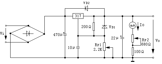 LM317集成可調(diào)穩(wěn)壓電源接線圖