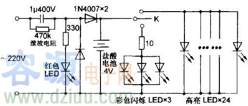 自帶鉛酸蓄電池充電LED應急燈電路圖