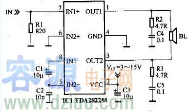 基于TDA2822M的小功率有源音箱電路