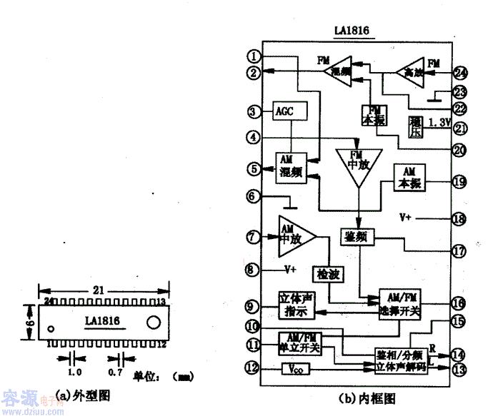 LAl816、LAl816M-單片AM/FM立體聲收音集成電路圖