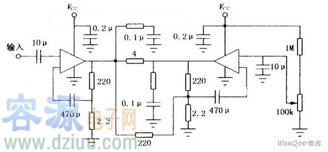 用穩(wěn)壓集成功放制作的功率放大器,對電子愛好者來說,作為開拓思路的一種嘗試不無積極意義。該電路為純甲類工作,又用低噪聲管作電壓放大,所以THD,NF等指標都不錯,輸出功率可達到30W. 電路如圖所示,晶體