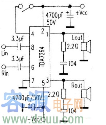 TDA7264是SGS-THOMSON公司在前兩年推出的一款優(yōu)質、接線極其簡單的高保真功放集成電路。該電路具有完善的過流,過壓保護,且只有8個腳,比TDA1521A使用更方便、功率更大,而且適用的電壓