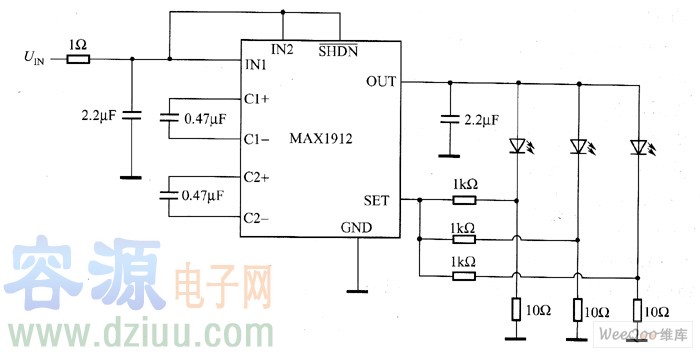MAX1912驅動白光LED電路圖