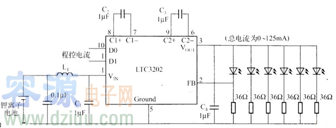 本文介紹了LTC3202是Linear TECHNOLOGY公司生產的不需要門控振蕩器的電荷泵,圖為采用LTC3202電荷泵的鋰離子電池供電驅動白光LED電路。