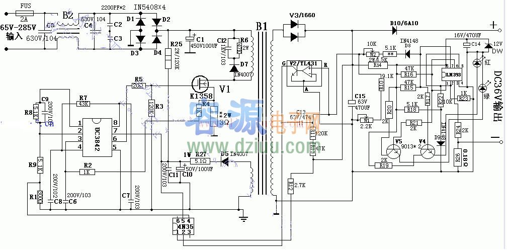 [電子基礎(chǔ) ]使用DC3842 36V電動(dòng)車輸出充電器電路圖